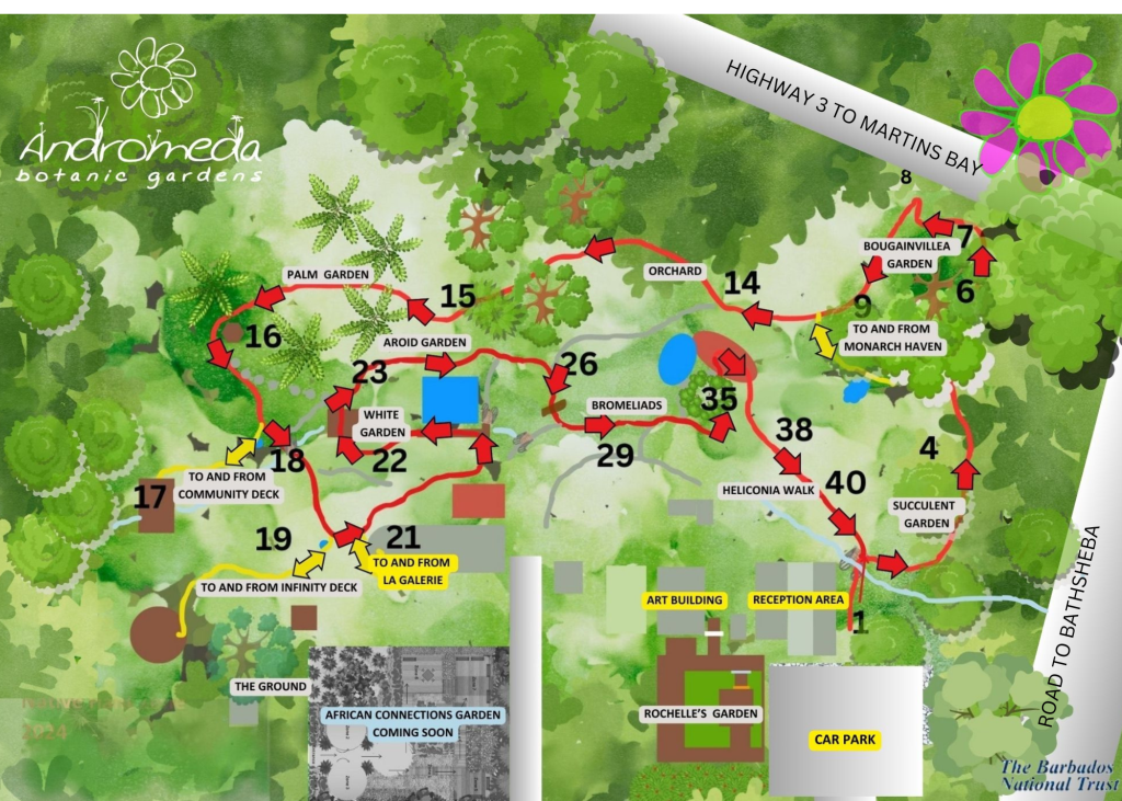 Conservation. Plants, wildlife and Barbados’ heritage. Research. Via the Andromeda Botanical Committee. Education. Heritage/ethnobotanical workshops, design, practical horticulture, art and more. Display. What a display – incredible plant variety, plus magical wildlife.