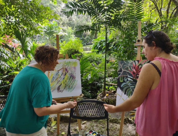 Run by our local artists, guests gather in the garden (or inside our Community Arts Project building) with their canvas, and paint plants, flowers etc. They will express themselves with acrylic paints while sipping on drinks (including wine and/or rum-based cocktails) and nibbling on a variety of locally made snacks such as fishcakes and breadfruit chips.