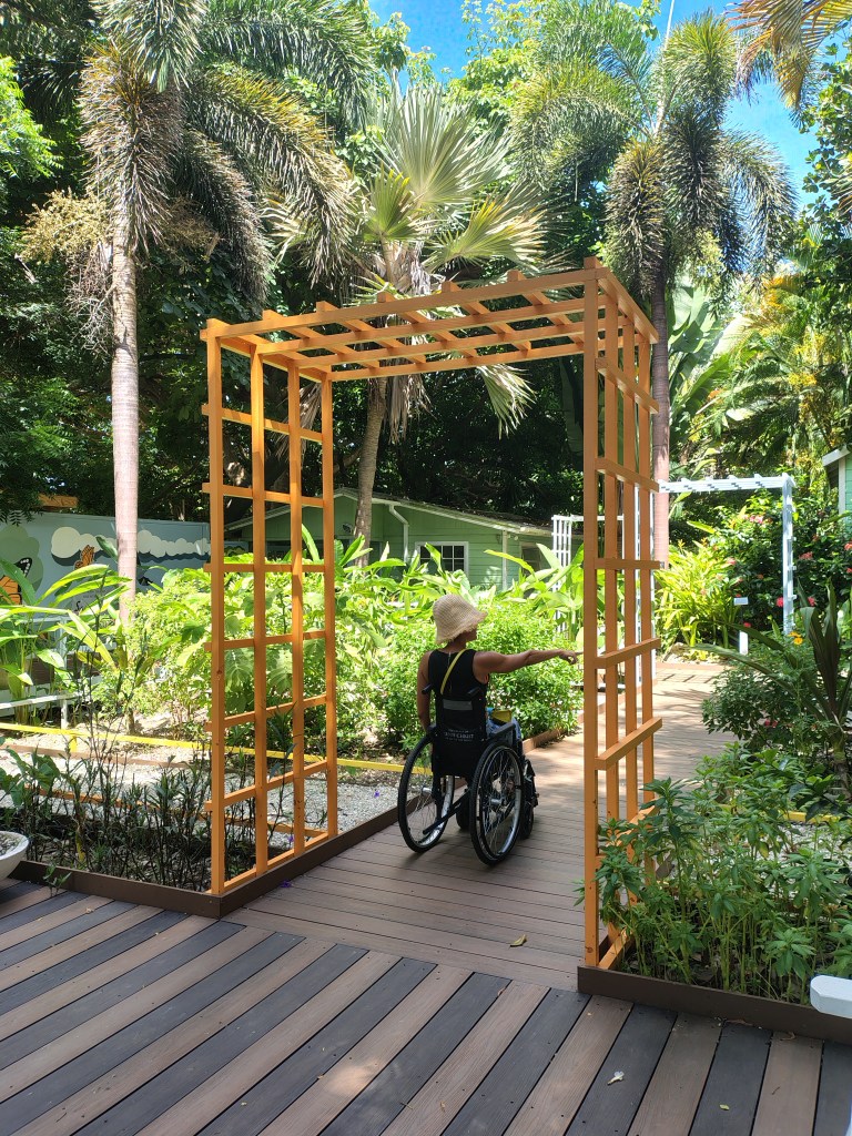 Rochelle’s Garden is fully-funded by Sandals Foundation with the roof and trellis greatly funded by GlobalResolve. The garden is a microcosm of the larger Andromeda, with the emphasis on attracting wildlife. The beds are colour banded with plants that are drought-tolerant. There is no lawn. Huge thank you to Frontline Trading who provided additional decking when we realised the wheelchair navigation needed just that little bit more space!